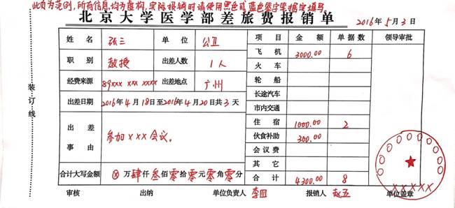 三、北京大学医学部差旅费报销单(点击打开或隐藏)
