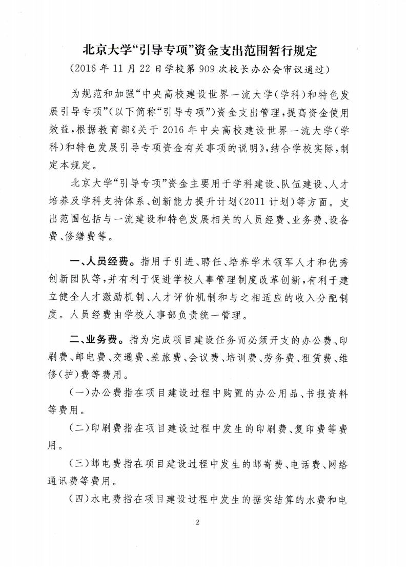 2. 首页» 规章制度» 学校规章制度» 关于印发《北京大学“引导专项”资金支出范围暂行规定》的通知
