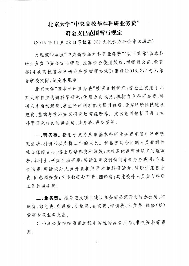 2. 首页» 规章制度» 学校规章制度» 关于印发《北京大学“中央高校基本科研业务费”资金支出范围暂行规定》的通知